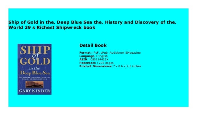 Ship of gold in the deep blue sea by gary kinder reads like a clive cussler novel but is actually nonfiction. Advanced embedding details, examples, and help! Kerry shale try for $0.00 $14.95/month after 30 days. Ship of gold in the deep blue sea, victim: Ship of gold in the deep blue sea is a testament to the human will to triumph over adversity. The book takes hold of you from page one and never lets go. Ship of gold in the deep blue sea. Buy a cheap copy of ship of gold in the deep blue sea book by gary kinder. History and heroics, science and suspense―ship of gold has that blockbuster feel.―sailing worthy of the best fiction and enough action to shame james bond.―men's journal 4.6 out of 5 stars 3. Originally published in 1998 and a best seller in its hardcover and paperback publications, gary kinder's ship of gold in the deep blue sea tells the story of the. The other side of murder. Use features like bookmarks, note taking and highlighting while reading ship of gold in the deep blue sea: