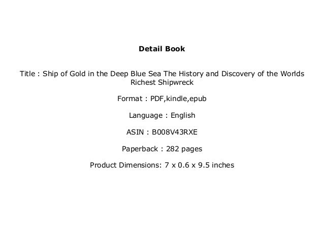 Citations contain only title, author, edition, publisher, and year published. Advanced embedding details, examples, and help! He authored the true crime classic, victim: Ship of gold in the deep blue sea. Download it once and read it on your kindle device, pc, phones or tablets. Ship of gold in the deep blue sea is nonfiction treasure. It is also a great american adventure story of the opening of earth's last frontier. Ship of gold in the deep blue sea is a testament to the human will to triumph over adversity. In the perfect storm (los angeles times book review). Ship of gold in the deep blue sea is a testament to the human will to triumph over adversity. The book takes hold of you from page one and never lets go. 4.6 out of 5 stars 3. Sold by goldenroses and ships from amazon fulfillment.