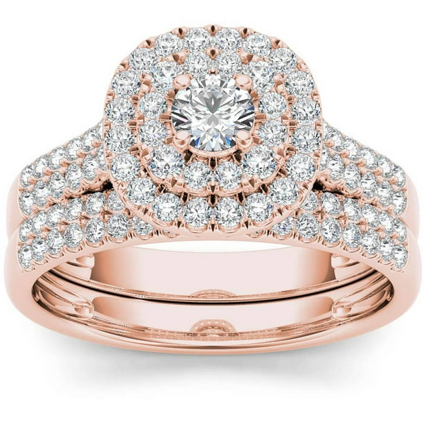Walmart Rose Gold Engagement Rings - Imperial Diamond 1 Carat T W Diamond Criss Cross Shank Single Halo 14kt Rose Gold Engagement Ring Set Walmart Com Walmart Com
